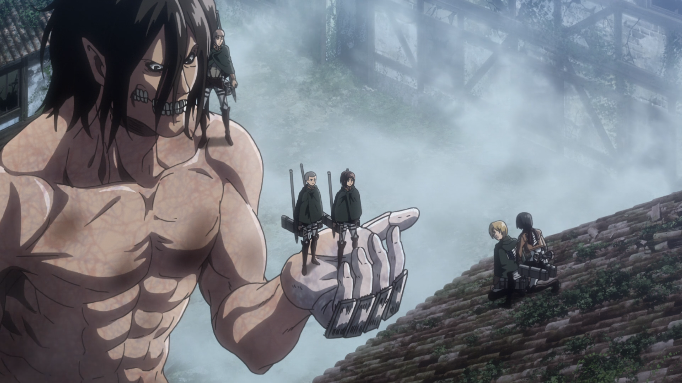 The little nuggets of truth were certainly spread around this episode – from Zeke’s words, to Reiner referring to team titan as ‘Warriors’, to Bertholdt realizing those behind the walls didn’t deserve to die, but they were at war and he wanted to go home.
