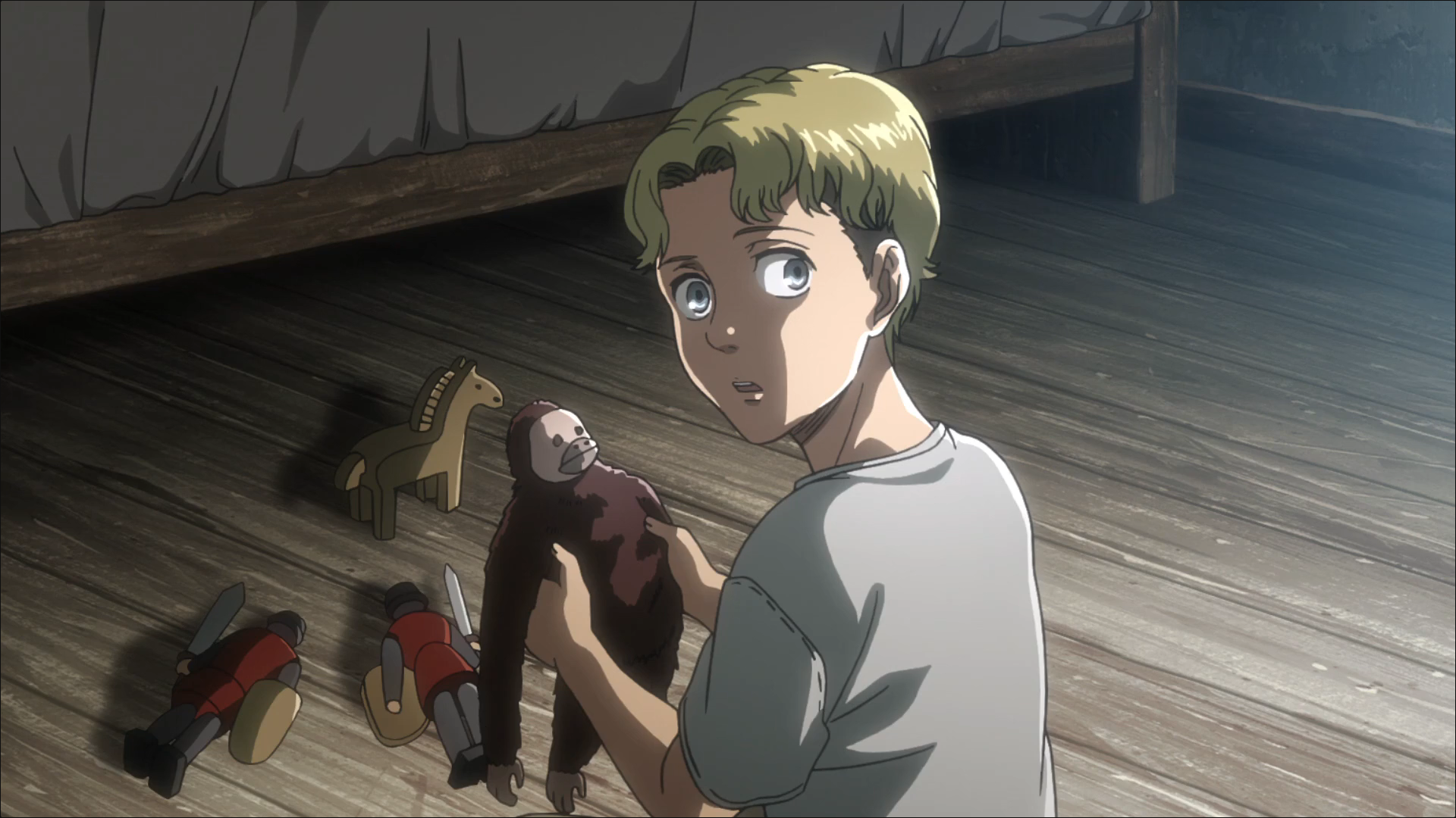 I also find irony in the fact that Zeke is playing with a Beast Titan toy by the time the Marleyean Warrior youth program is announced, and that Xaver’s son had a stuffed toy Ram.